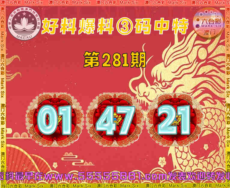 281期:《好料爆料》 🎪③码中特🎪【01.47.21】开:47